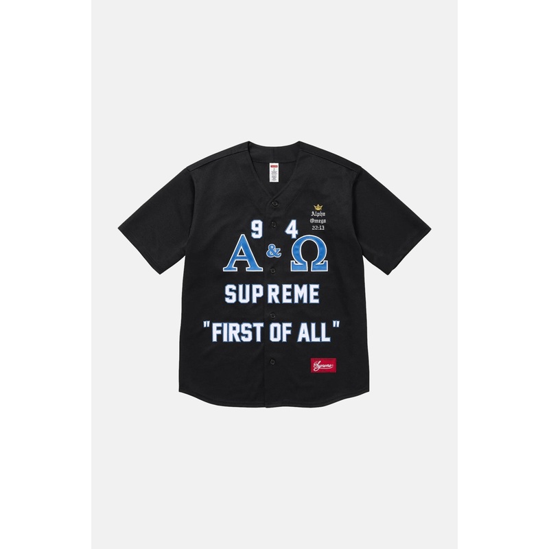 Poly sand knit jersey with button front closure. Tackle twill appliqu at front and back. Embroidered graphic on chest and athletic label at lower front.- Color: Black- Release Date: 9/5/24- Season: FW24