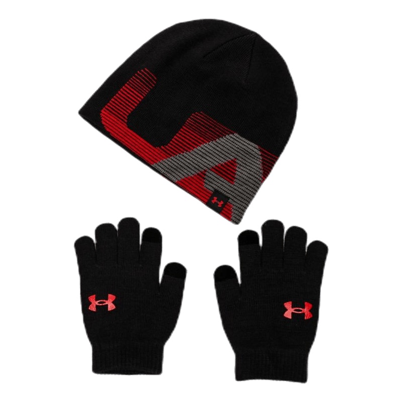 Under Armours Junior Beanie & Gloves Combo r viktiga i vinter. Med en vrmebevarande, svetttransporterande och andningsbar mssa samt ett par handskar kommer ditt barn att vara varmt, torrt och bekvmt hela vintern samtidigt som det ser stiligt ut!