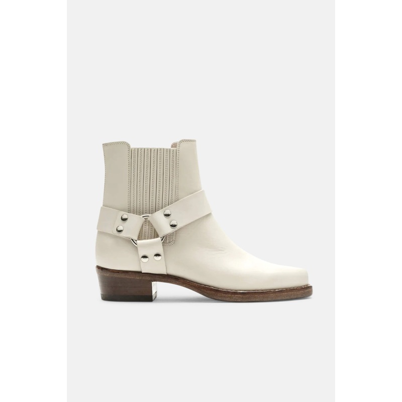 - Color: Ivory- Hand-crafted in Italy- Square toe- Silver harness detail- Elastic side panels- 100% Leather- Style #: 762-14GSHCAB