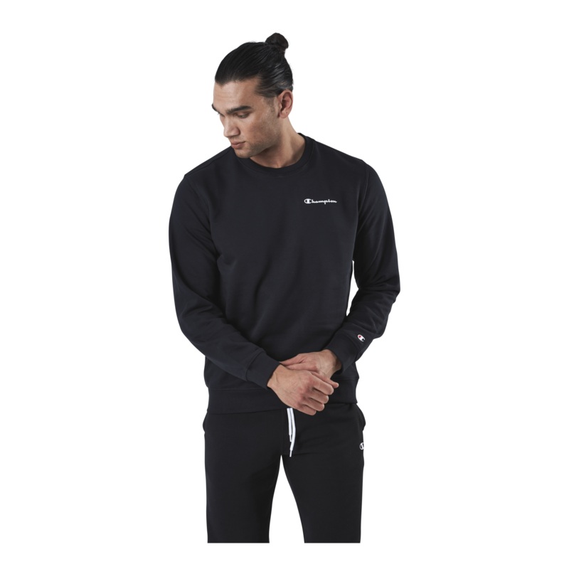 Champion mns svart ls crewneck sweatshirt med logotyp p brstet och frgkontrast fr att dra gonen frn ryggen.