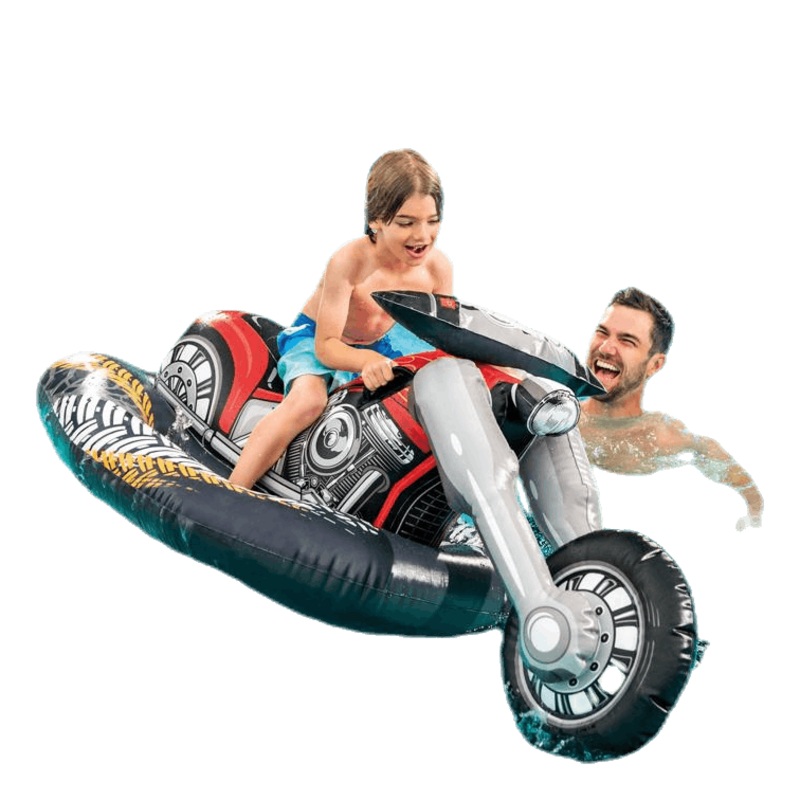 Den hr uppblsbara motorcykeln r det allra hftigaste tillbehret som du kan f tag p! Alla kommer att vilja kra en omgng nr du har den med i poolen. Motorcykeln r utrustad med tv handtag, s det finns ngot ordentligt att ta tag i nr vgorna i poolen blir fr sto