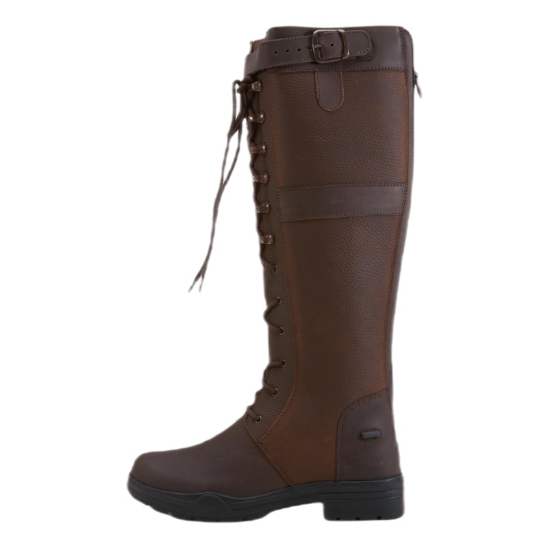 Vinterstvla i skinn, med snrning framtill, full lngd YKK dragkedja bak, ntfoder och en stigbygelvnlig sula