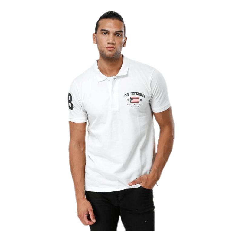 Vit klassisk pik i hg i hg kvalitet, 100% bomull. Tryck p brst och p arm. Neckband och slits i kontrastfrg. Tv knappar upp till. The Defender label bak i nacke samt p sidan.