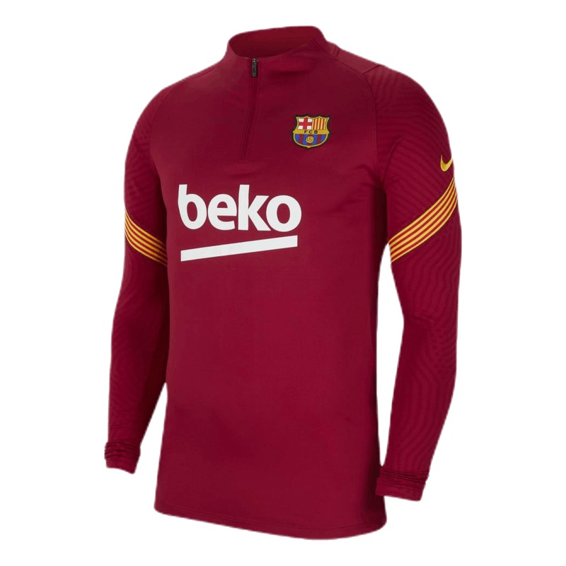 The FC Barcelona Strike Drill Top is made of stretchy, sweat-wicking fabric to help you stay dry and comfortable when practicing your skills. The 1/4-zip design includes a streamlined fit with thumbholes to help cut down distractions.