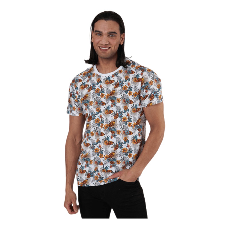 Jack & Jones presenterar en T-shirt med rund hals i vit frg frn den smarta casual-linjen. T-shirten har rund hals, korta rmar och ett allover-tryck.