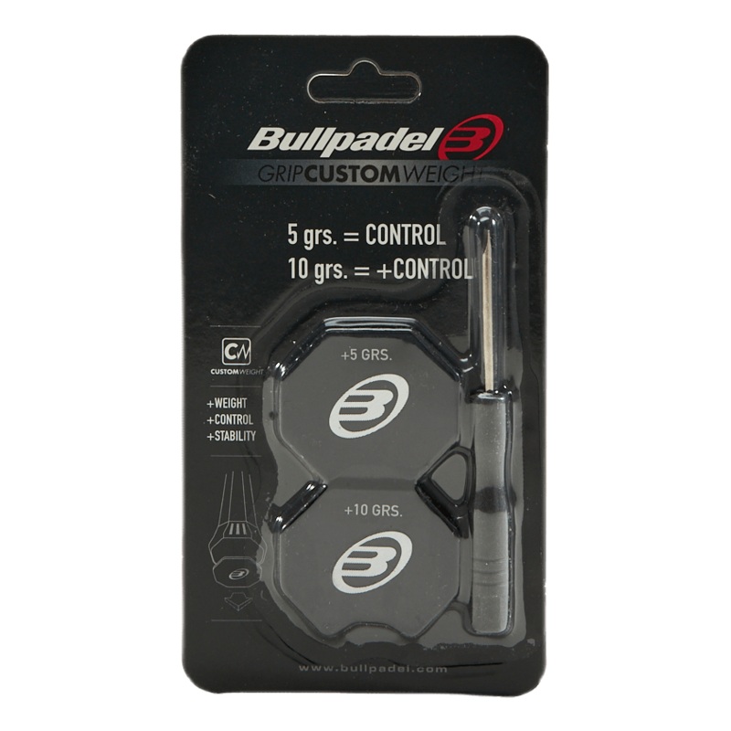 Gripweigh 5/10 gDet nya viktplattasystemet utvecklat av Bullpadel lter dig modifiera vikten och balansen p racketen, f mer kontroll, kraft eller balans beroende p varje spelares behov.Detta system r uppdelat i Protector Custom Weight, som bestr av ett 3-pl