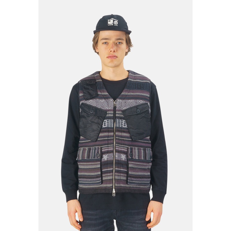 - Color: Black - Striped kilim powerloom cotton - Two-way front pockets - Three chest pockets - Large rear flap pocket - Front zipper closure - Quilted lining - Made in Portugal - Style #: 6328