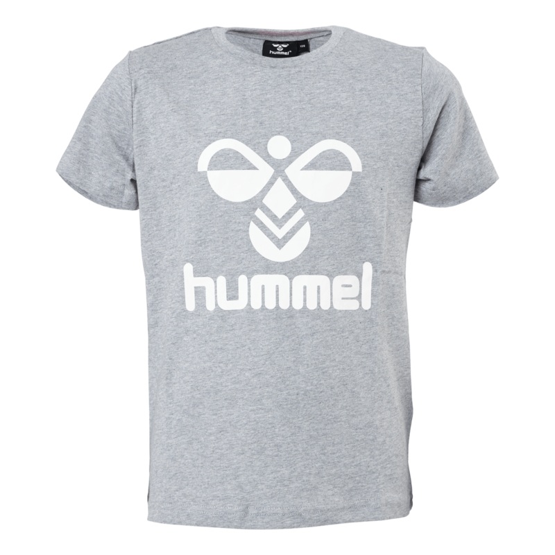 Hummel t-shirt fr barn. Rund hals, gr frg, 100% samstickad. Tyg: 100% samstickad