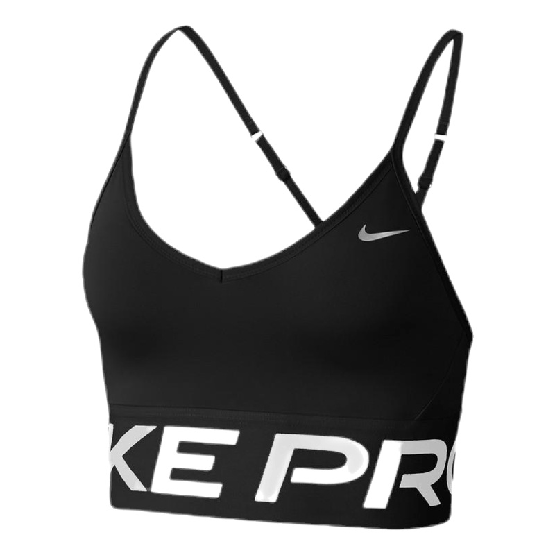 The Nike Pro Indy Sports Bra has an innovative design that reduces the visibility of perspiration so you can work up a sweat without showing it off. Soft fabric gives you a smooth, comfortable fit.