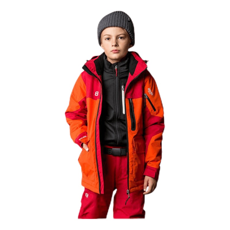 Lng skidjacka fr barn, med avslappnad passform och stora fickor. Avtagbar huva som r fst med tryckknappar fr att lossna ifall barnet fastnar i ngot. Extra hg krage med borstad trik p insidan samt kardborrejustering fr att sluta ttt runt handsken. I nederkant finns en justerbar dragsko och ett elastiskt snls fr att hlla ute snn. En brstficka, tv midjefickor med handvrmarfoder samt en liftkortsficka p vnster rm – alla med vattentta YKK-dragkedjor. durAtec Extreme r ett tekniskt material med bde hg vattentthet (10 000mm) och andningsfrmga (8 000g/m2/24h). Fullt tejpade smmar. Alla produkter frn 8848 Altitude r 100% fria frn fluorkarboner! Junior, Loose Fit Huvudmaterial: 100% Polyamid Foder: 100% Polyester Vaddering: 100% Polyester (durAtec Extreme)