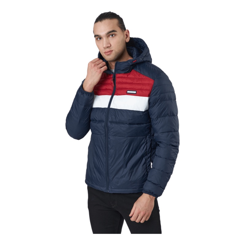 JJEACE PUFFER HOOD r en vinterjacka av mrket JACK & JONES. Den r gjord av 100% nylon och finns i mrkbl och marinbl frger; den har en avslappnad stil fr vuxna.