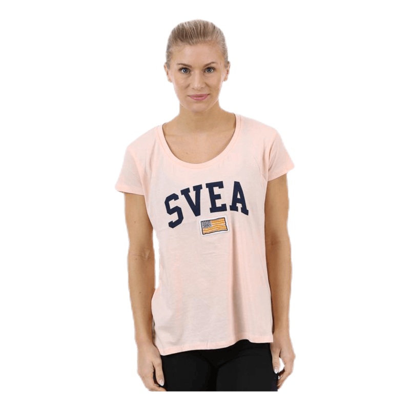 Bekvam t-shirt med rundad halsringning och har stor svealogga och agga mitt pa brostet.