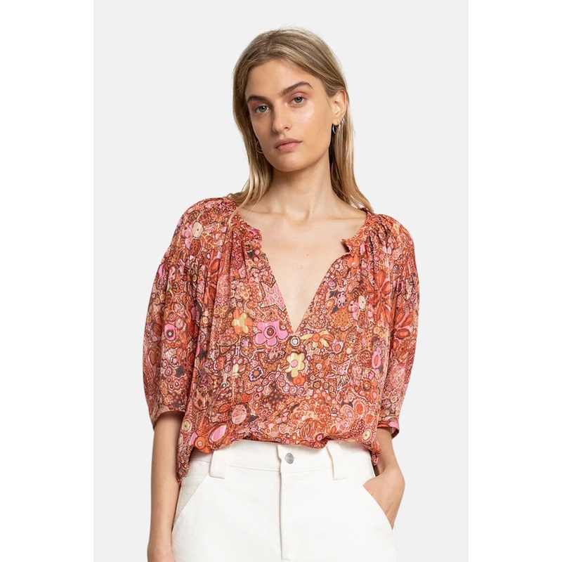 - 65% Cotton, 35% Silk- Dry Clean- Not Lined- Pull On - Style No. 5TOPS01179 - Color: Sorbet Multi