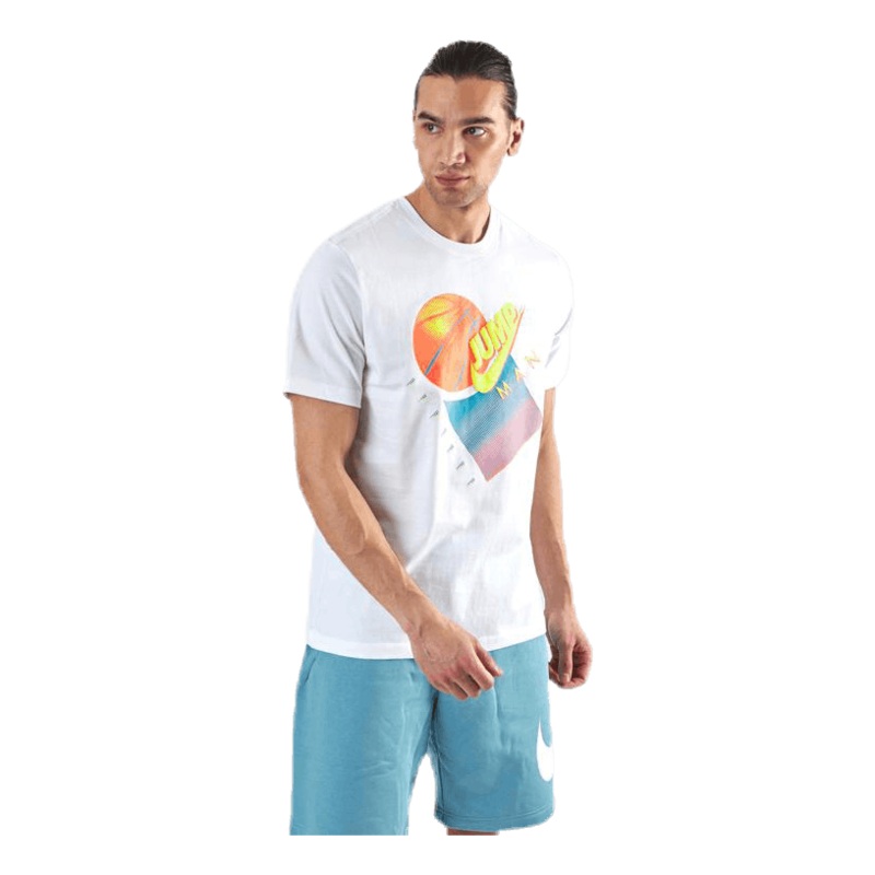 LOGO CLASH.The Jordan T-Shirt plays with iconic logos to create a look that's fresh and unexpected. More Details Standard fit for a relaxed, easy feelScreen-printed graphics100% cottonMachine wash100% COTTON