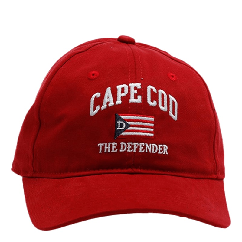 Rd keps i mjuk 100% bomullstwill. Brodyr fram och baktill. Storleks reglage i borstad mssing. The Defender label p insida.