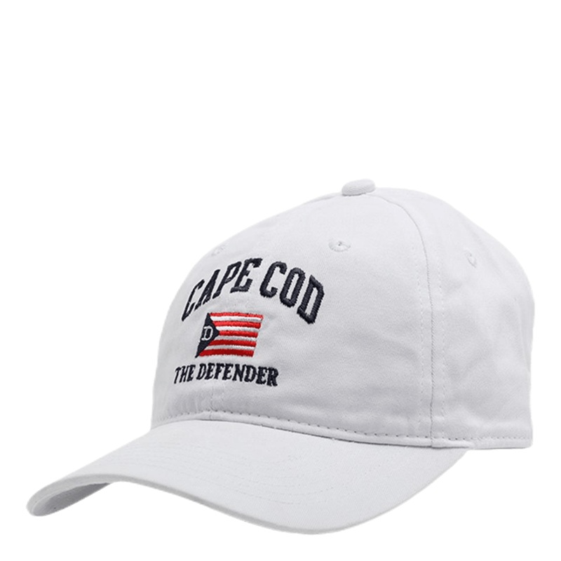 Vit keps i mjuk 100% bomullstwill. Brodyr fram och baktill. Storleks reglage i borstad mssing. The Defender label p insida.
