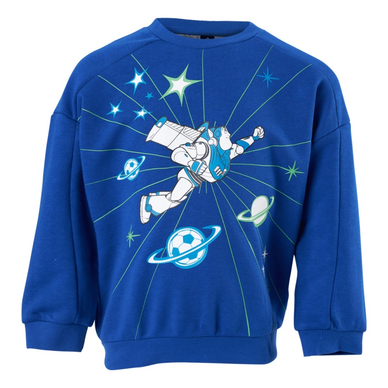 Skicka dem ut p deras nsta ventyr i grannskapet i denna adidas-trja fr barn. Den lsa passformen och de fallande axlarna garanterar avslappnad komfort nr de r p sprng. Disneys Buzz Lightyear-grafik p framsidan kommer att elda upp deras entusiasm. Vra bomull