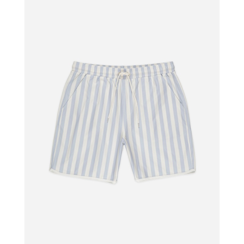 These men's boardshorts feature an elastic drawstring waistband, mesh lining, side slit pockets and a hidden zipper back pocket.UPF 50+Featuring our 'blue stripe' print.Fit: 6.3" inseam | 17" outseamS: 30, M: 32, L: 34, XL: 36Care: Machine wash cold. Hang