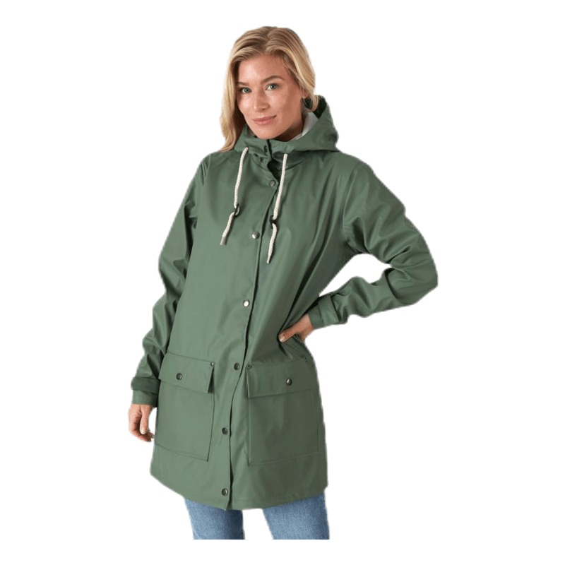 Detta r en tunn och stilren regnjacka fr dam, tillverkad i 100 % polyester med vattentt belggning p utsidan. Med vattenpelare p 10000 mm och svetsade smmar r jackan hundra procent vattentt. Jackans passform r rak och frsluts med tryckknappar, och har tv pp