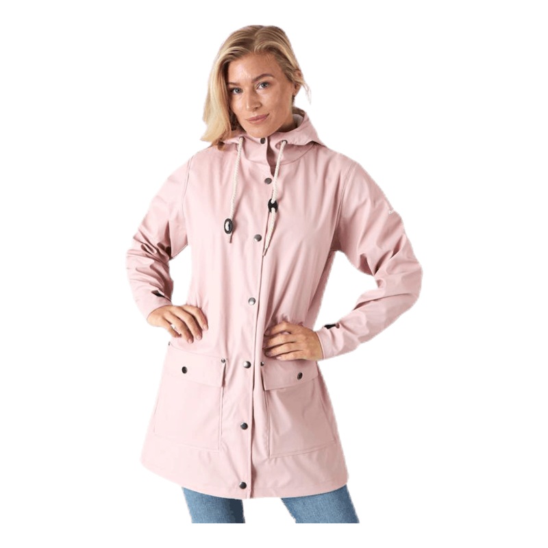 Detta r en tunn och stilren regnjacka fr dam, tillverkad i 100 % polyester med vattentt belggning p utsidan. Med vattenpelare p 10000 mm och svetsade smmar r jackan hundra procent vattentt. Jackans passform r rak och frsluts med tryckknappar, och har tv pp