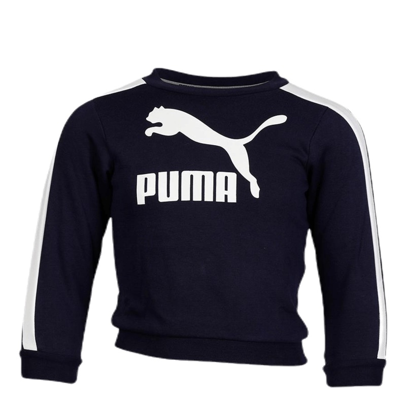 Klassiskt joggingset fr baby/smbarn i skn fleece. Material: 68% bomull/ 32% polyester. Ribbade muddar. Klassiska Puma T7-paneler i kontrastfrg p sidorna. Trjan har tv knappar vid sidan. Byxan har resr i midja och dold snrning i midja fr bsta passform. Norm