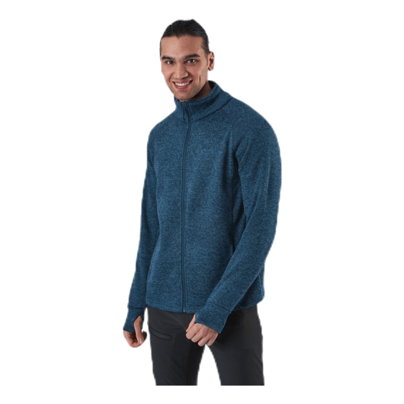Snygg stickad och melerad fleecejacka. Insidan r borstad p insidan och r mjuk mot huden. Fleecejackan r mycket stretchig, slitstark och har en god vrmeisolerande frmga. Jackan r frsedd med tv handfickor med dragkedjor.