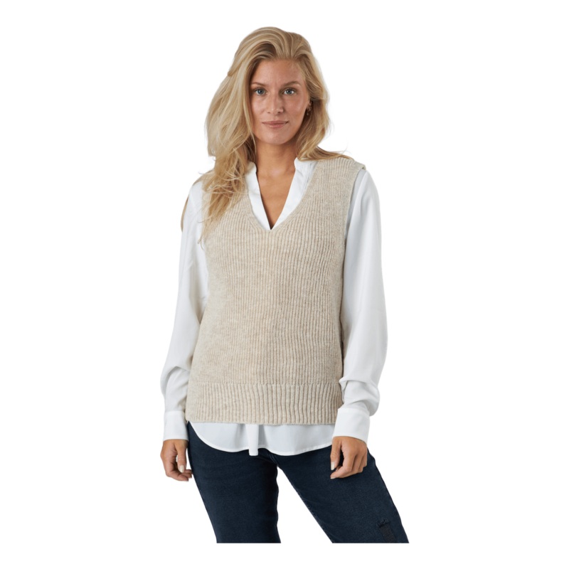 ONLPARIS LIFE V-NECK VEST r en modevst fr kvinnor. Materialet r 40% akryl, 28% ull – tervunnet, 18% polyester, 10% viskos, 4% polyamid.