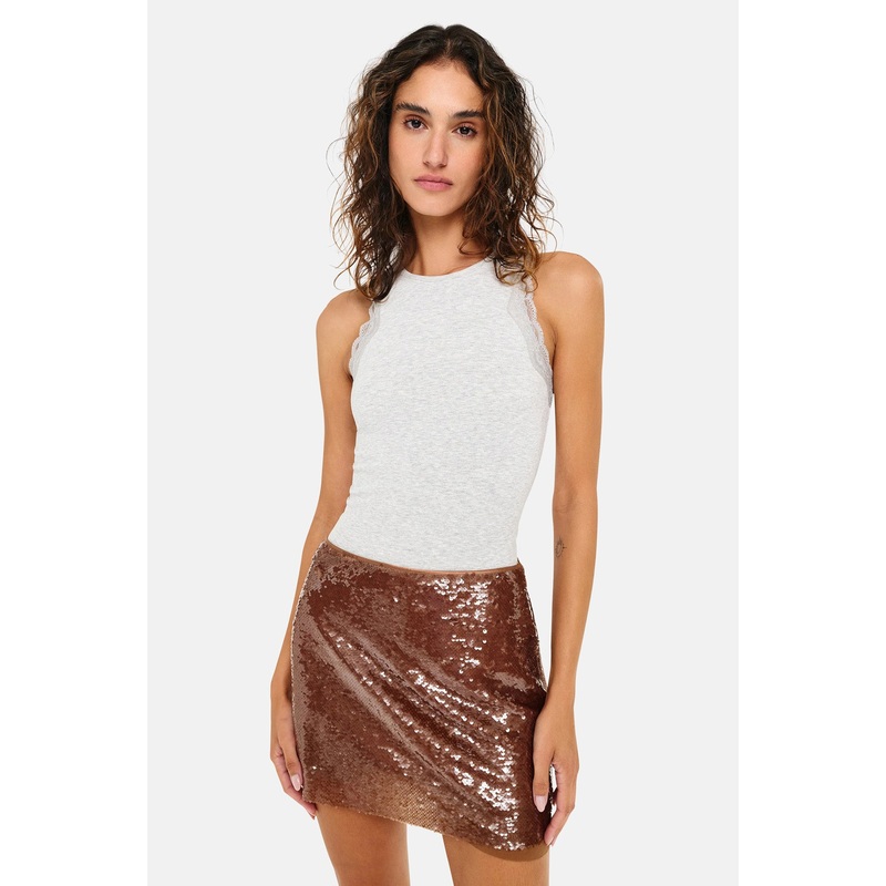 A super soft rib knit crew tank with lace along armhole.Color: Heather greyLength sits at high hipBra friendlySlim fit, runs true to size92% Viscose, 8% SpandexHand wash cold, only non chlorine bleach when neededStyle #: S25-C03