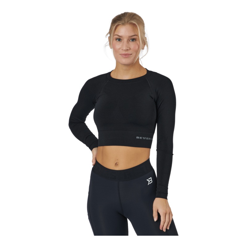 Rib SMLCrop LS frn Better Bodies har ett lgt std och sitter p den naturliga midjan. Kopparna r gjorda av dubbelt nttyg fr extra ventilation. Den speciella ribbkonstruktionen ger extra std och formning.