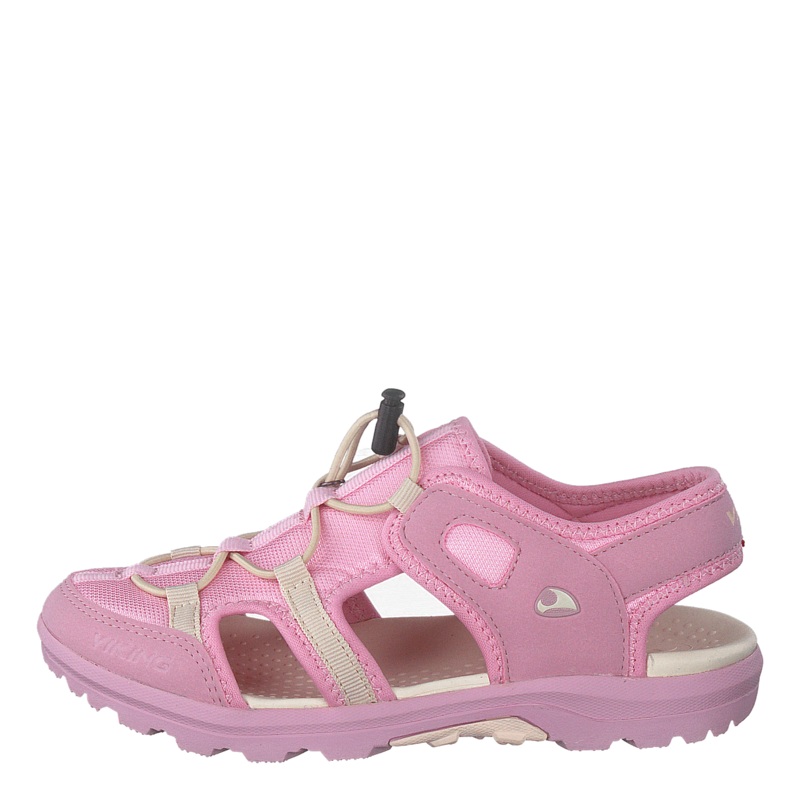 Eftersom sm barns ftter ocks behver mycket frihet under sommaren skapade Viking Sandvika. Denna lilla sandal ger bde ventilation och mycket std och skydd. Den har ett starkt remsystem som bekvmt omsluter foten och skyddar trna. Den elastiska snrningen r lt