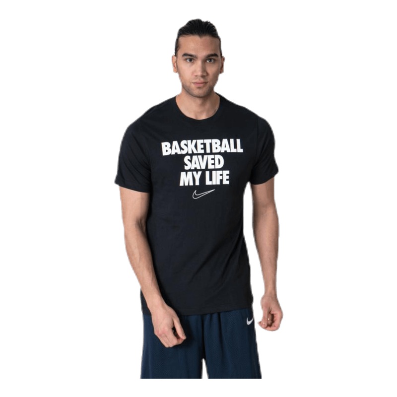 BASKETBALL SALVATION.Give credit where credit is due. The Nike Dri-FIT ""My Life"" T-Shirt is lightweight and easy-wearing with a soft, cotton-like feel.Nike Dri-FIT technology helps keep you dry, comfortable and focused.Lightweight knit fabric feels soft