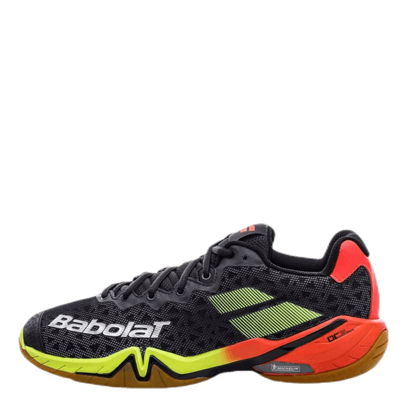 Babolats toppmodell nr det kommer till inomhussporter som passar utmrkt till badminton, innebandy, gymmet och mer. Nu i en ny modell fr 2018.Den r uppbyggd av alla de viktigaste kraven som stlls p en inomhussko; bra grepp, ltt vikt samt god andningsfrmga.Undersulan r utvecklad och tillverkad av Babolats samarbetspartner Michelin. 3D-formade dubbar i olika storlekar ger en optimal sula, strre dubbar bidrar med hllbarhet och extra bra grepp medan de mindre dubbarna kar friktionen. Explosivare startrrelser och snabbare stopp.Shadow Tour har 56 % bttre andningsfrmga n sina fregngare vilket leder bort majoriteten av fotens svett. Ovansidan r frstrkt med Soft Shield-material p strategiska punkter som ofta utstts fr extra slitage.Nytt i denna modell r det omarbetade dmpningssystemet. Efter noga labbtester har Babolat upptckt att allt fler itramp med foten sker med hlen frst. Lsningen r ett dmpningssystem som r placerat lngre bak fr att tcka hela hlpartiet och drmed utka komforten rejlt.Utomordentligt grepp och perfekt andningsfrmga tillsammans med den ltta vikten gr Shadow Tour till en toppmodell.